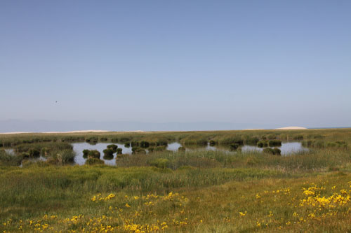 上午10時許,我們來到了此次活動的第一個目的地——小泊湖,我們將從這里開始徒步穿越牧區(qū),走近青海湖。這一路,雖然走的很累,但是周圍的風景確實很美。我們走過了沙丘和濕地,潔白的沙地讓人有上去打個滾的沖動,而那一片隱藏在高原之上的濕地中,黃色野花點綴其間,間或有幾只鳥飛過,美麗的風景使人忘卻了勞累。經過大約一小時的行走后,我們終于走到了美麗的青海湖畔。在湖邊同事們做的第一件事情不是休整,而是挽起褲腳走進青海湖,率先到達的男同事們已經開始打起了水仗,最后抵達的人便及女同事們則淋成了落湯雞。在湖邊嬉戲、休整后,進行了團隊游戲環(huán)節(jié)。在游戲過程中,我們領會到了團隊的力量——只有互相幫助,才能共同完成任務。