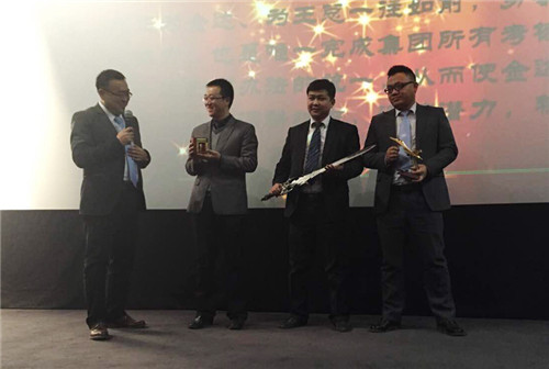 在路上——這是公司領(lǐng)導(dǎo)對萬華金盛副總經(jīng)理盛斌的工作概括。在2014年,他承擔(dān)起原甘肅萬華獵豹汽車銷售業(yè)務(wù),萬華金典裝潢業(yè)務(wù),萬華金盛公司架構(gòu)調(diào)整等多項重大工作。在這一系列的工作中,他忙碌并快樂著。2014年是新金盛公司蓄勢待發(fā)的一年,終端品牌市場活動、員工滿意度及忠誠度在各汽車業(yè)務(wù)公司中遙遙領(lǐng)先。盛斌的獎品是一把利劍。寓意在2015年,萬華金盛將如利劍出鞘,所向披靡。宿總對他的寄語便是:外斬競品,內(nèi)樹管理。
