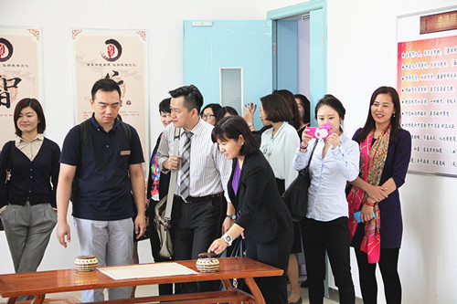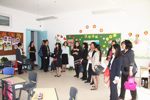 加拿大駐北京大使館商務(wù)專員司馬天明先生和張可先生,以及來自加拿大26所大學(xué)的教育代表32人,依次參觀了蘭州萬華中加國(guó)際學(xué)校的高爾夫教室、國(guó)學(xué)教室、臺(tái)球室、瑜伽館、游泳館、乒乓球館、籃球館、計(jì)算機(jī)教室、學(xué)生教室、學(xué)生宿舍及風(fēng)雨操場(chǎng),學(xué)校老師用流利的中英雙語(yǔ)向代表團(tuán)介紹了各個(gè)功能室及區(qū)域。
