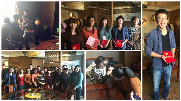 年會(huì)初始,魏總及姚總引領(lǐng)發(fā)言,一起總結(jié)過去的2015,展望美好的2016,對慧華大家族全體員工在過去一年中的付出和奉獻(xiàn)給予了充分的認(rèn)可和贊揚(yáng)。用餐結(jié)束后隨即進(jìn)入頒獎(jiǎng)環(huán)節(jié),兩家公司領(lǐng)導(dǎo)分別為2015年評功評獎(jiǎng)得主頒發(fā)了榮譽(yù)證書。首先,由慧華樂居營銷經(jīng)理雷澍、慧華樂居總經(jīng)理魏敏娟分別為“最佳新人獎(jiǎng)”獲得者劉瑤、“優(yōu)秀員工獎(jiǎng)”獲得者牛桂珍、“最佳管理者獎(jiǎng)”獲得者馬金蘭頒發(fā)了榮譽(yù)證書;接著,慧華榮光總經(jīng)理姚生艷為公司“第四季度用心人”陳雅璇、馬婷玉頒發(fā)了榮譽(yù)證書;市場商務(wù)部經(jīng)理陳雅璇為“優(yōu)秀員工獎(jiǎng)”得主何朋兵及“特殊貢獻(xiàn)獎(jiǎng)”得主張國梁頒發(fā)榮譽(yù)證書。獲獎(jiǎng)代表劉瑤及何朋兵發(fā)表獲獎(jiǎng)感言后慧華大家族全體員工合影留念,共同定格了這一精彩瞬間。