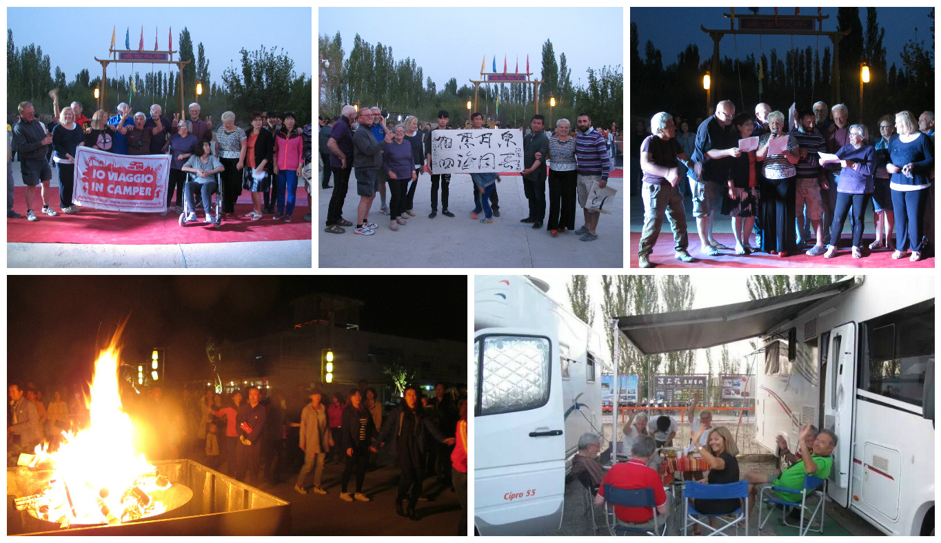 4月29日,一隊(duì)房車緩緩駛?cè)肭甓鼗?#8226;月牙泉小鎮(zhèn),車上的20余位意大利游客在小鎮(zhèn)安營(yíng)扎寨、品嘗美食,并與游客們一起狂歡。