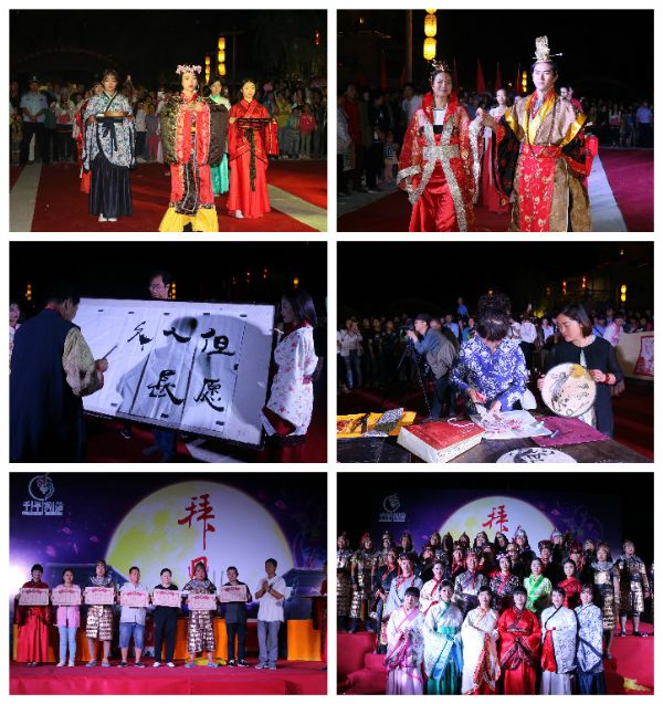當(dāng)晚20時,傅有宏的書法“但愿人長久,千里共嬋娟”、潘海萍木板雕刻、何克鳳現(xiàn)場剪紙、宋秀蓮量體裁衣,素慧齋漢裝走秀等表演贏得了觀眾陣陣掌聲。伴隨著優(yōu)美的《踏歌舞》,月牙泉小鎮(zhèn)丙申仲秋拜月會拉開序幕。