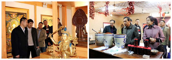 考察組一行在游客中心觀看了千年敦煌宣傳片,并認(rèn)真聽取了游客中心講解員王宜宜對千年敦煌項目總規(guī)的簡單講解。隨后,考察組一行實地參觀了月牙泉小鎮(zhèn)致麟辣椒坊、清涼書屋、鴻無客棧等店鋪,詳細(xì)了解了千年敦煌的發(fā)展理念、經(jīng)營模式、建設(shè)規(guī)模、社會及生態(tài)效益等情況,并與吳明部長就發(fā)展文化旅游產(chǎn)業(yè)進(jìn)行了相互交流和探討。