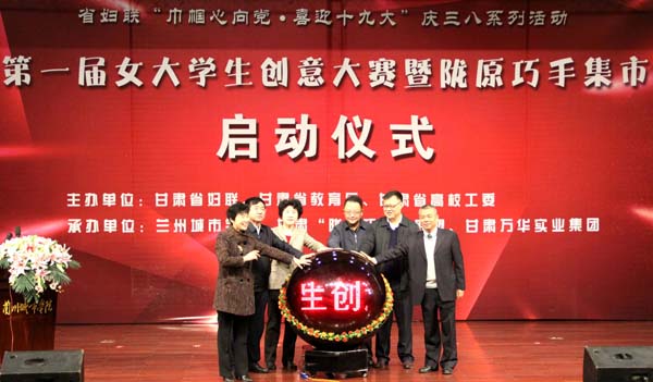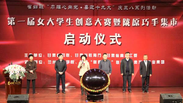 睿智創(chuàng)新始于心,激情創(chuàng)業(yè)踐于行。3月6日下午16時(shí)30分,由甘肅省婦聯(lián)、省教育廳、省高校工委主辦,蘭州城市學(xué)院、甘肅“隴原巧手”聯(lián)盟和甘肅萬華實(shí)業(yè)集團(tuán)承辦的“首屆女大學(xué)生創(chuàng)意大賽暨隴原巧手集市”在蘭州城市學(xué)院正式啟動(dòng)。這是全省婦女慶祝三八婦女節(jié)107周年“巾幗心向黨·喜迎十九大”系列活動(dòng)的重要內(nèi)容,也是貫徹落實(shí)《甘肅省大力推進(jìn)大眾創(chuàng)業(yè)萬眾創(chuàng)新實(shí)施方案》,提升“隴原巧手”社會(huì)影響力,鼓勵(lì)引領(lǐng)女大學(xué)生參與大眾創(chuàng)業(yè),萬眾創(chuàng)新行動(dòng)的有力舉措。