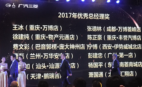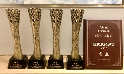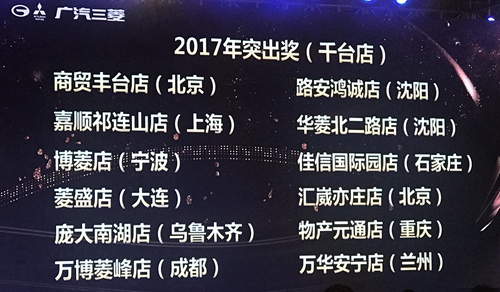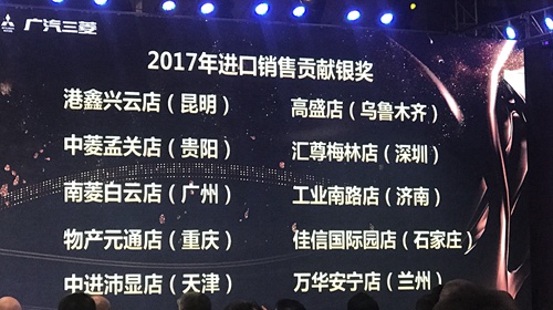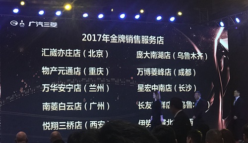 1月15日,“聚勢前行 賦能未來”廣汽三菱銷售服務(wù)店年會(huì)在廈門舉行,甘肅萬華汽車銷售有限公司總經(jīng)理曹磊、常務(wù)副總經(jīng)理王文彬,天水勝華汽車銷售服務(wù)有限公司總經(jīng)理白鵬飛應(yīng)邀出席。憑借著出眾的企業(yè)實(shí)力、銷售業(yè)績與品牌服務(wù),會(huì)上喜報(bào)頻頻傳來:甘肅萬華汽車銷售有限公司在全國數(shù)百家廣汽三菱經(jīng)銷商中,以優(yōu)異成績榮獲廣汽三菱2017年金牌銷售服務(wù)店、2017年進(jìn)口銷售貢獻(xiàn)銀獎(jiǎng)、2017年突出獎(jiǎng)(千臺(tái)店)、2017年售后服務(wù)優(yōu)秀店、2017年優(yōu)秀總經(jīng)理獎(jiǎng)(曹磊)共5項(xiàng)大獎(jiǎng),為甘肅萬華驕人成績單再添絢爛一筆。