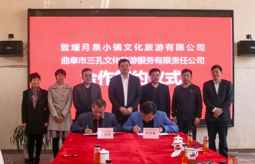 在熱烈友好的氣氛中,牛新偉代表公司與曲阜市三孔文化旅游服務(wù)有限責(zé)任公司董事長(zhǎng)尹洪福簽訂了《旅游合作意向書》。尹洪福熱情邀請(qǐng)敦煌月泉小鎮(zhèn)文化旅游有限公司到曲阜市考察交流,相互間建立起長(zhǎng)期聯(lián)絡(luò)機(jī)制,加強(qiáng)雙方在文化、旅游等領(lǐng)域的密切合作。牛新偉表示,兩地文化旅游資源豐厚,希望通過此次實(shí)地考察座談,加深了解,增進(jìn)友誼,優(yōu)勢(shì)互補(bǔ),加強(qiáng)兩地公司之間的交流與合作,全面提升雙方的旅游品牌影響力,力求達(dá)到互利共贏的目的。