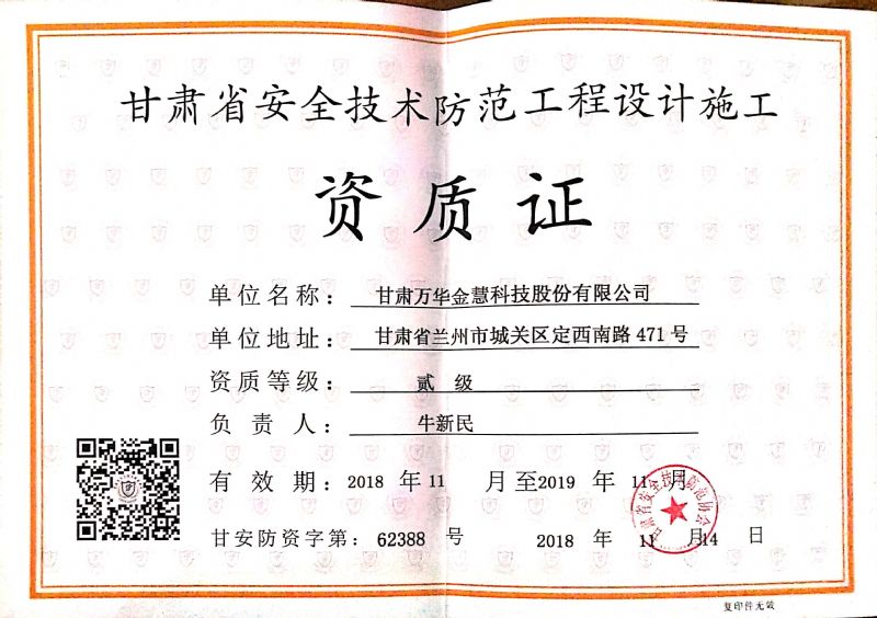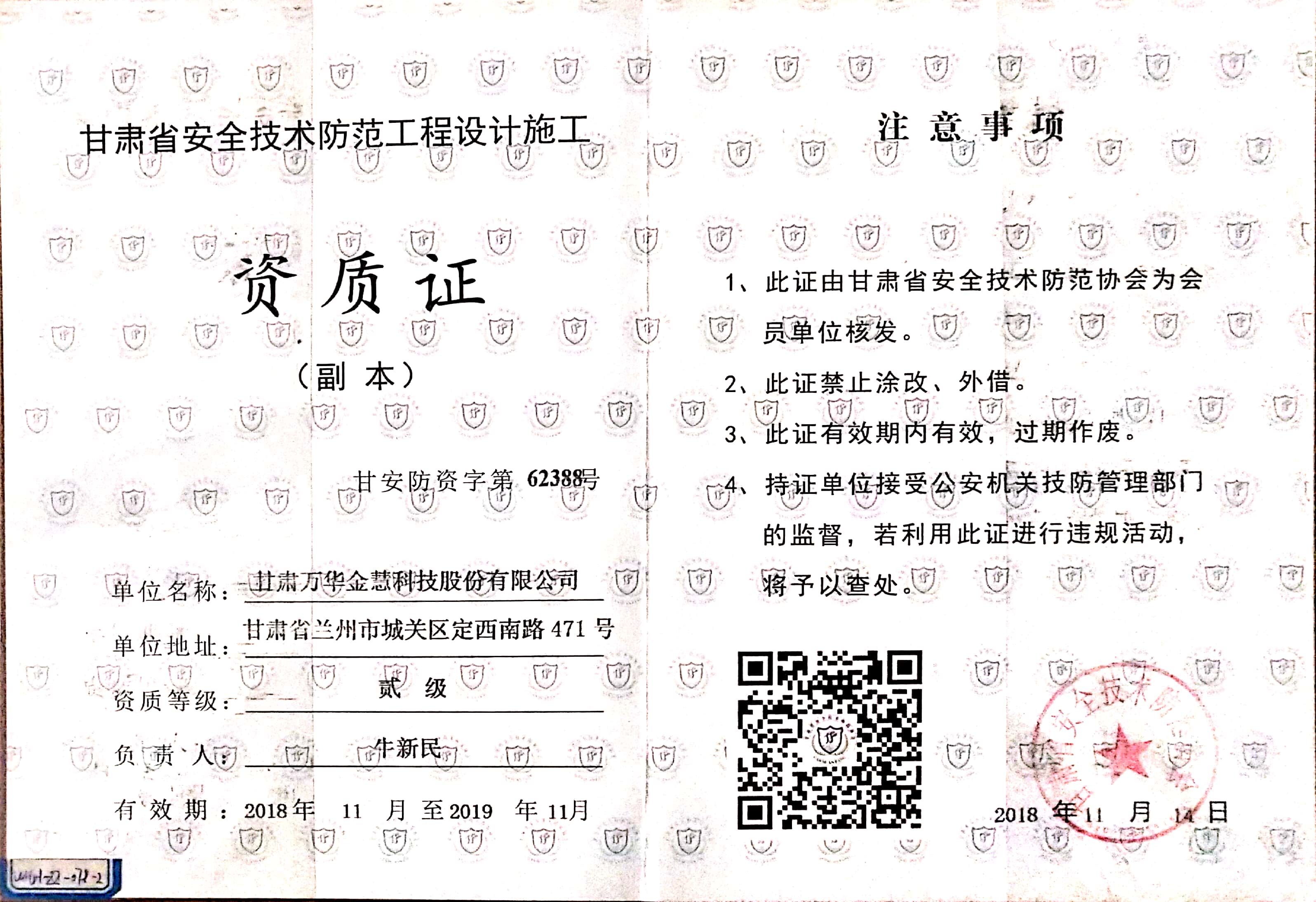 甘肅省安全技術(shù)防范協(xié)會 甘肅省安全技術(shù)防范工程設(shè)計施工資質(zhì)證