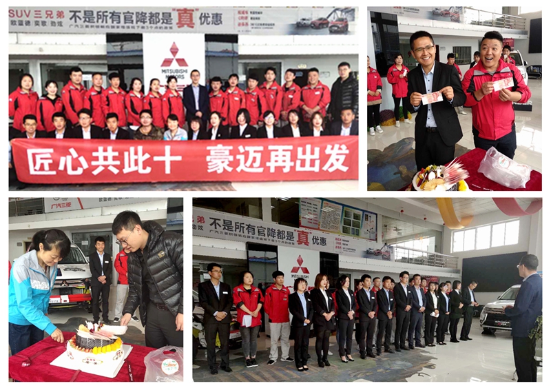 生日歌響起,白鵬飛帶著對(duì)公司的美好祝福、對(duì)未來(lái)的期許點(diǎn)燃生日蠟燭,映著溫暖的燭光,為天水勝華許下一份美好的愿望。侯東靖與廣汽三菱培訓(xùn)老師丁元博共同切開(kāi)蛋糕,將喜慶和祝福分享給在場(chǎng)的每一個(gè)人。