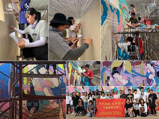 此次公益研學(xué)還開設(shè)了壁畫創(chuàng)作實(shí)踐課程。在老師的指導(dǎo)下,學(xué)員們結(jié)合敦煌壁畫飛天的典型特征、月牙泉小鎮(zhèn)特色以及對(duì)大音希聲的感悟,創(chuàng)作了全新壁畫作品——《梵韻》,為敦煌文化的傳承添上一筆獨(dú)特而靚麗的風(fēng)景線。同時(shí)借助畫作,呼吁社會(huì)各界人士,關(guān)注千年敦煌的文化傳承,關(guān)注聽力障礙群體的藝術(shù)才華和社會(huì)價(jià)值。