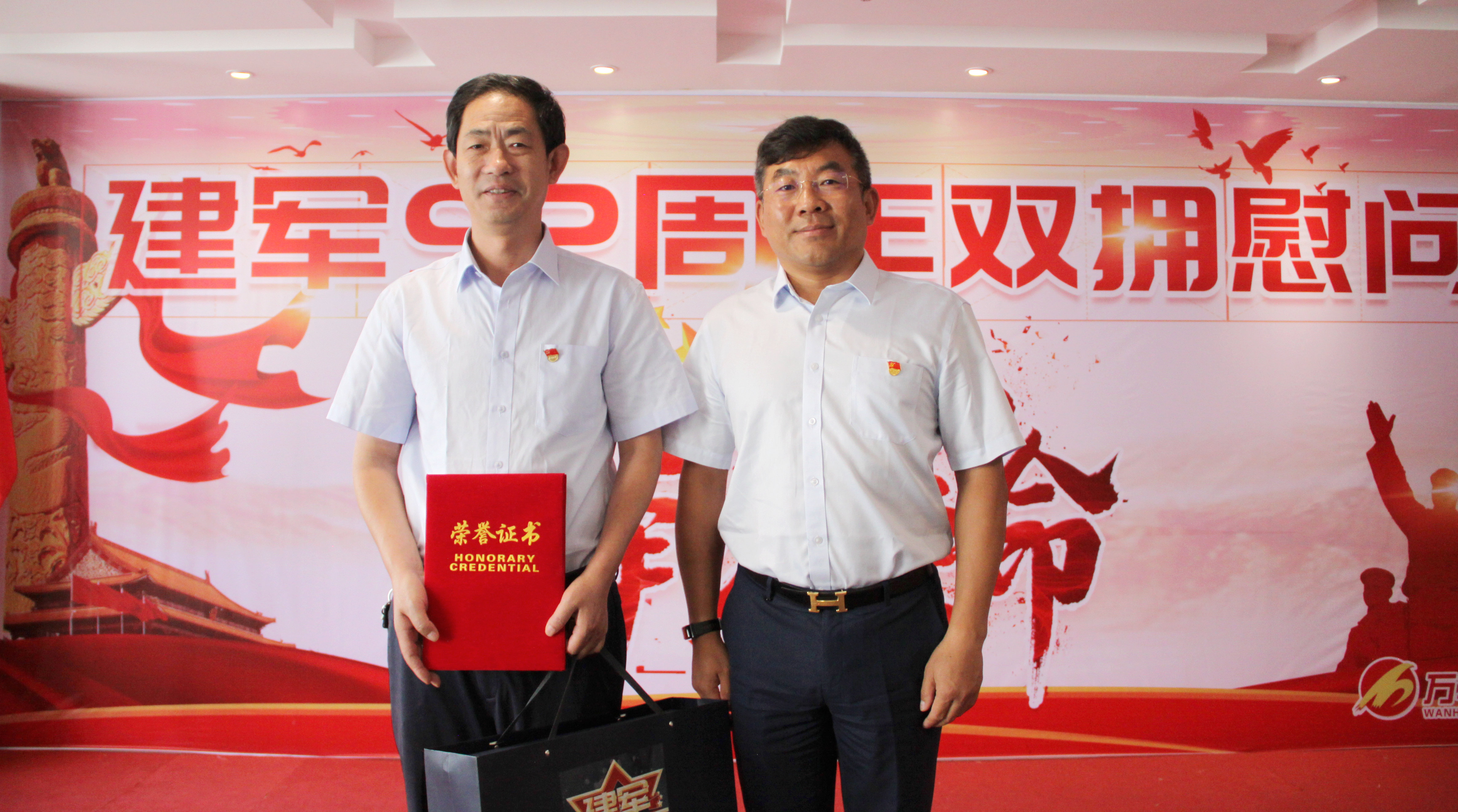 7月30日上午,為迎接八一建軍節(jié)的到來,萬華集團黨支部開展了“不忘初心、牢記使命”雙擁慰問主題黨日活動。萬華集團黨支部書記、董事長牛新民,總經(jīng)理牛新偉,監(jiān)事會主席魏敏娟,集團副總經(jīng)理兼董事會辦公室主任宿曉中,集團副總經(jīng)理兼開發(fā)部總經(jīng)理杜牧拉,集團財務總監(jiān)王鑫,甘肅大禹九洲測繪地理信息有限公司總經(jīng)理岳増琪、副總經(jīng)理楊晉強,甘肅萬華金慧科技股份有限公司董事會秘書王鑫出席活動,向現(xiàn)場23名退役軍人和軍人家屬送去節(jié)日的關懷和慰問,紀念中國人民解放軍建軍92周年。