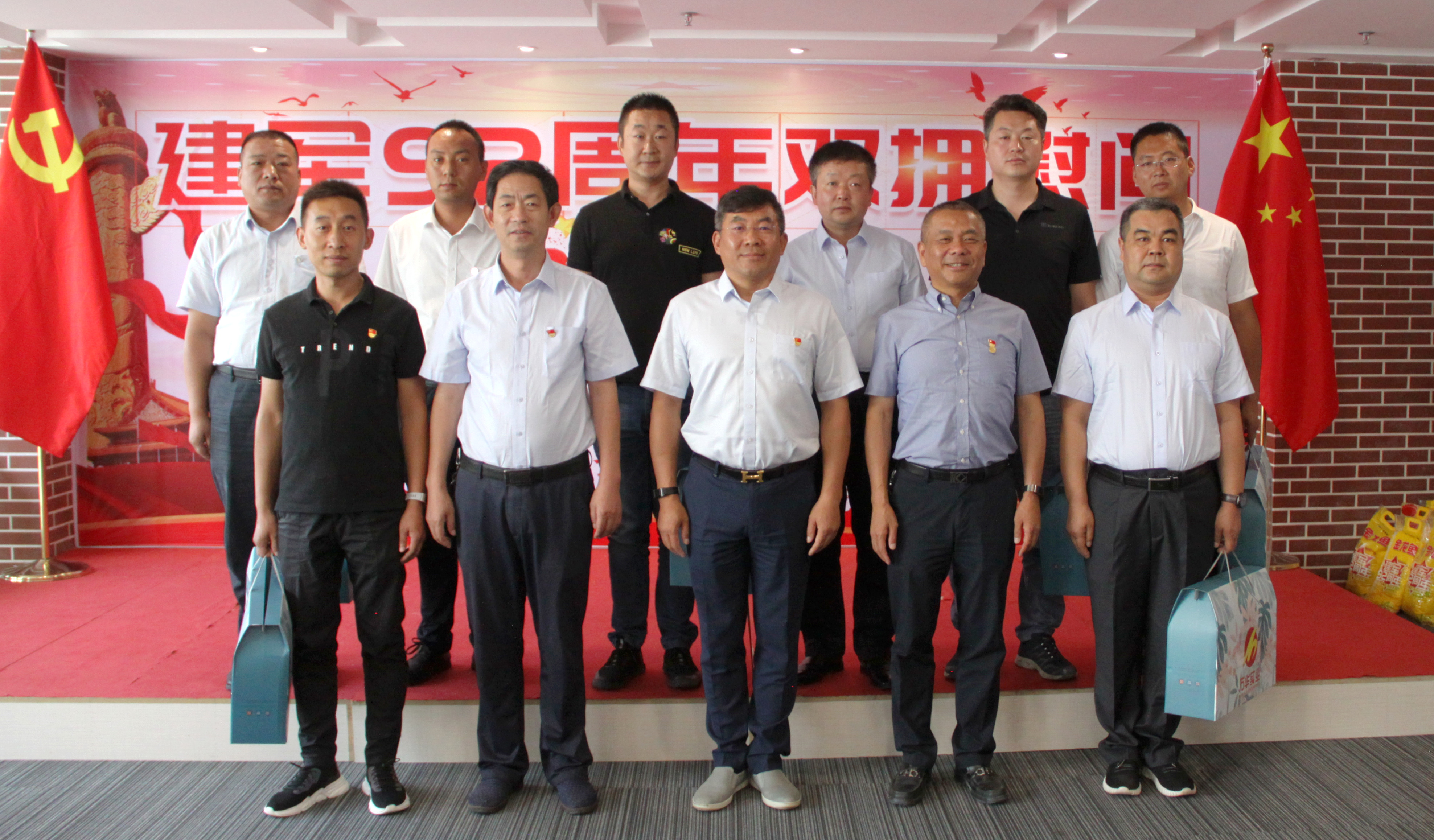活動最后,牛新民、牛新偉、岳增琪、楊晉強為在場的10位退役軍人及9位退役軍人家屬發(fā)放慰問品并現(xiàn)場合影。