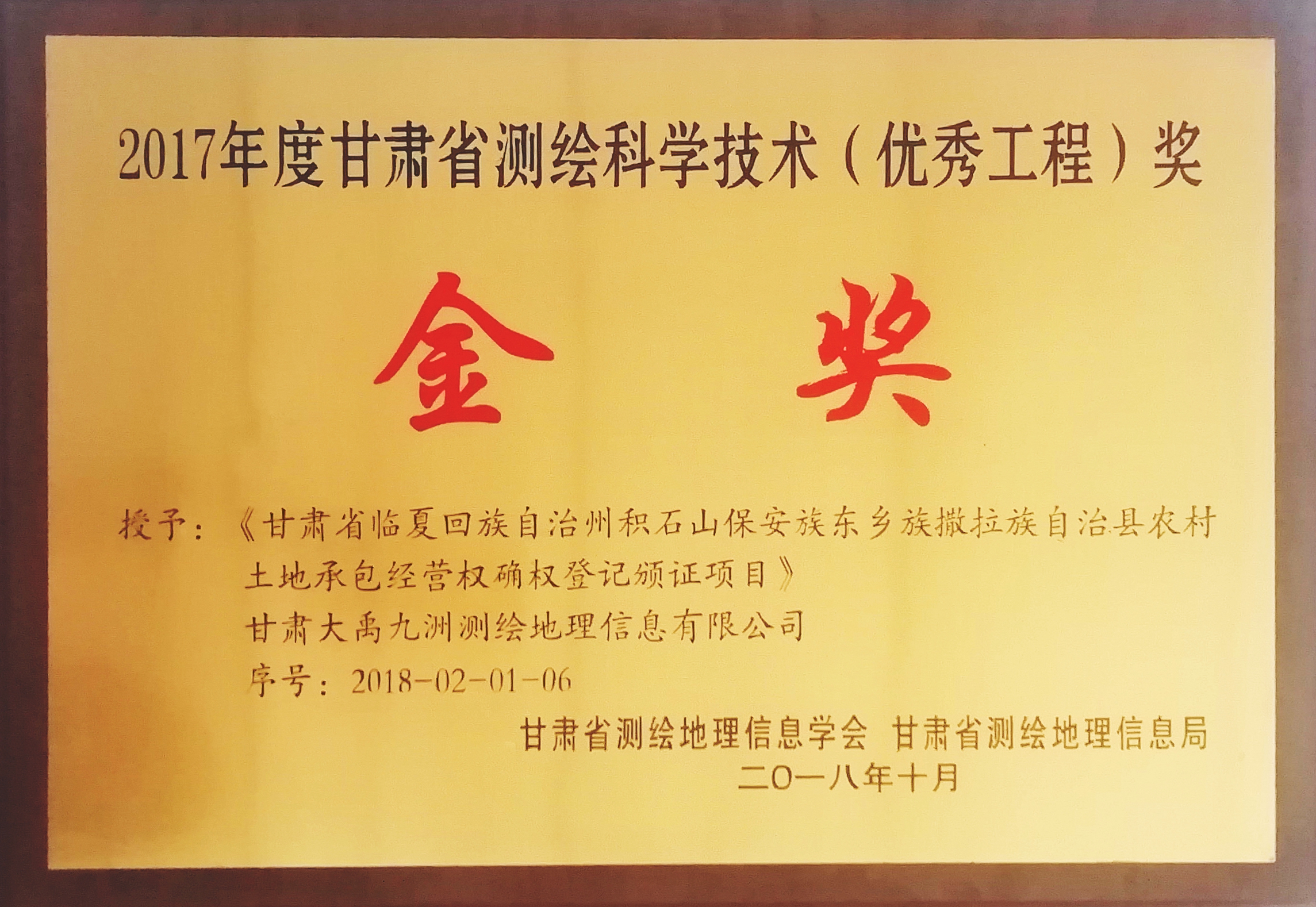 2017年度甘肅省測繪科學(xué)技術(shù)(優(yōu)秀工程)獎(jiǎng)-金獎(jiǎng)