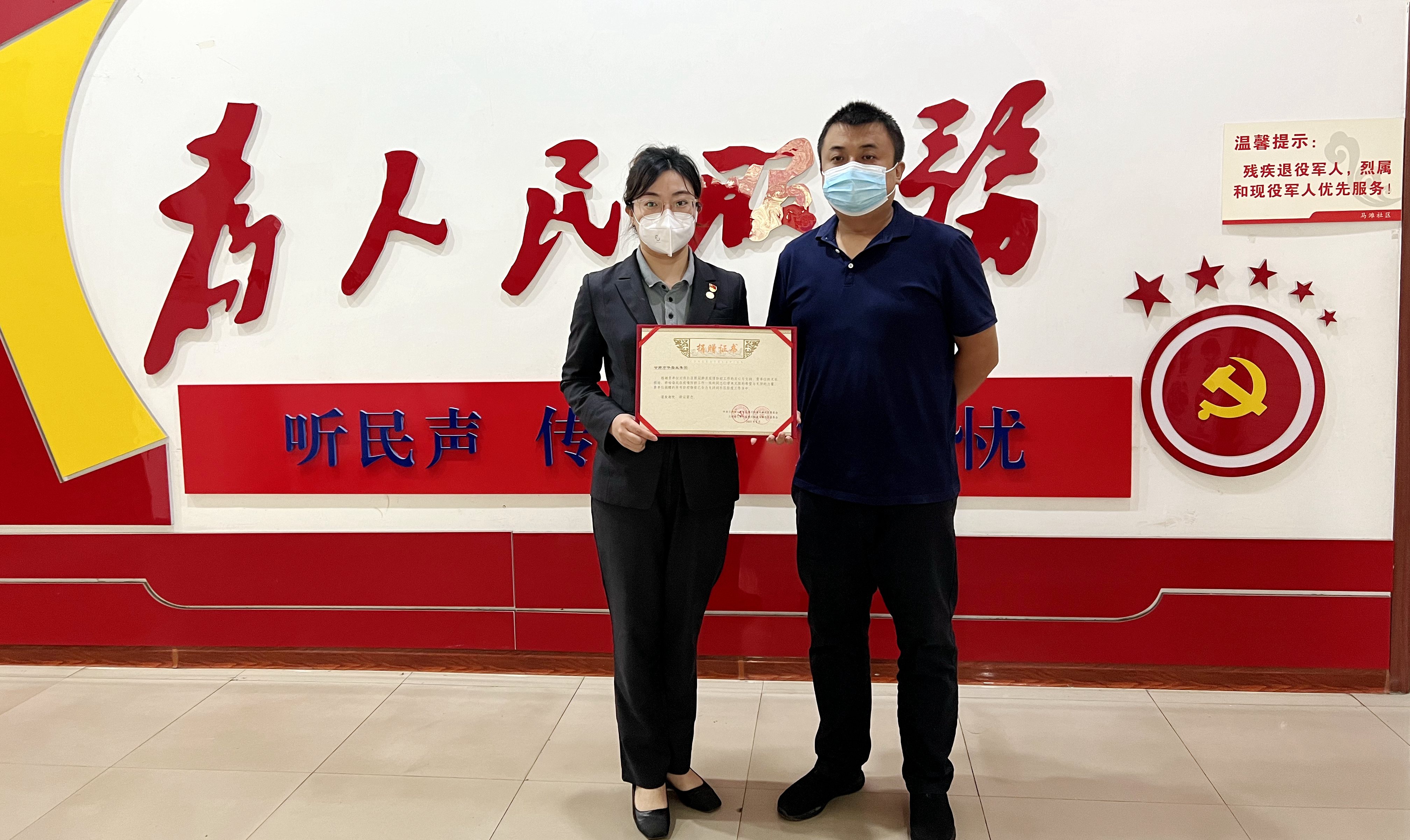 “感謝你們的付出!”8月30日,七里河秀川街道馬灘社區(qū)辦公室主任李祖林為甘肅萬華實業(yè)集團頒發(fā)“捐贈榮譽證書”,感謝萬華集團黨支部在此輪新冠疫情防控中的付出和慷慨捐贈。